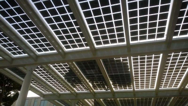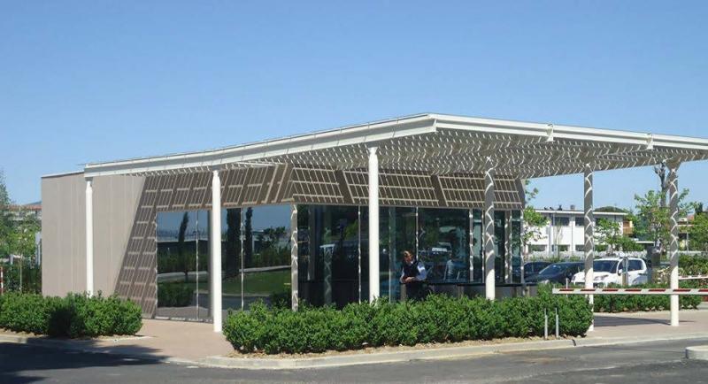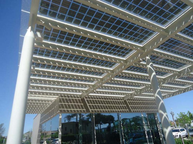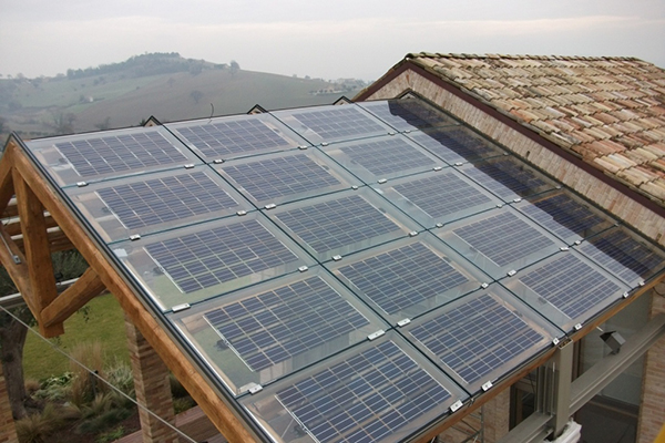 Řešením jsou celoskleněné fotovoltaické panel Brandoni Solare®. Jednotlivé FV články panelu jsou rozmístěné na průhledné skleněné desce, která zajišťuje nejen kvalitní krytí, ale i dostatečné osvětlení prostor. Při montáži se pak s moduly pracuje shodně jako s běžnými FV panely.